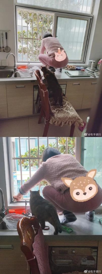 PS:还不忘套两个塑料袋在脚上,讲究!