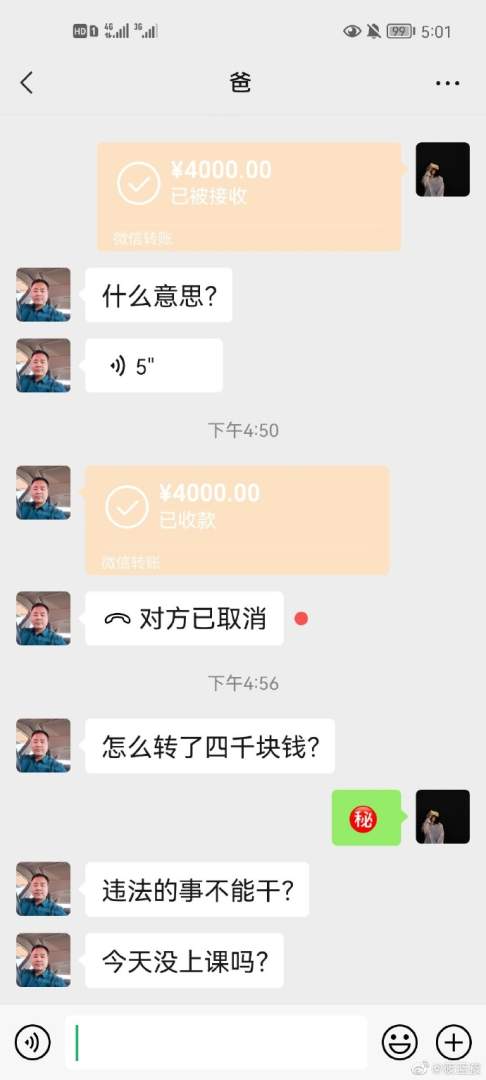 当我突然给我爸转了四千块。