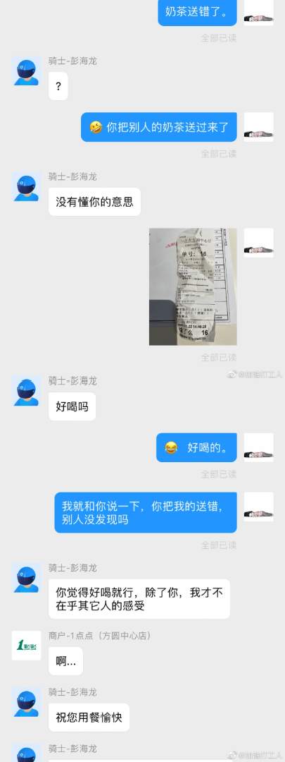 被外卖小哥霸道到了。