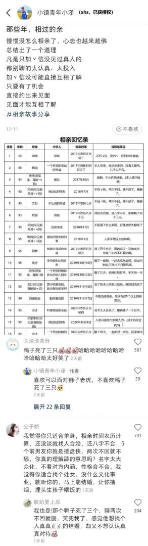 网友的相亲回忆录。
