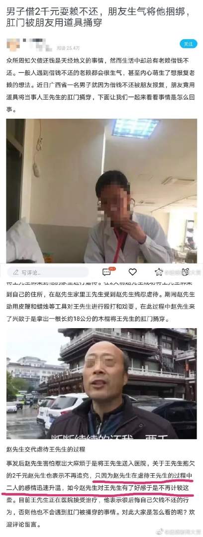 朋友竟用道具将当事人王先生的肛门捅穿。