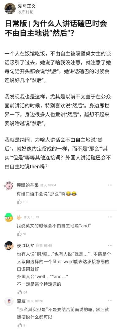 为什么很多人说话磕巴时会下意识地说“然后”?