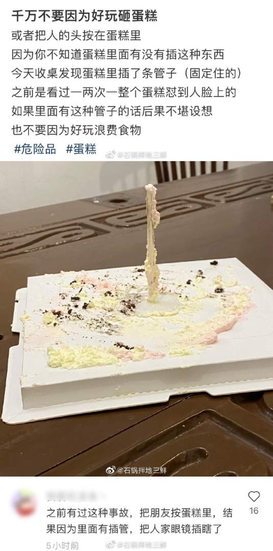 千万不要因为好玩砸蛋糕。