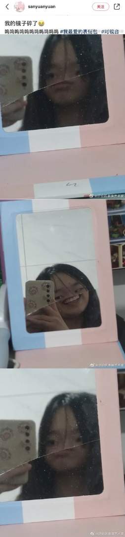 镜子碎了但五官团结了。