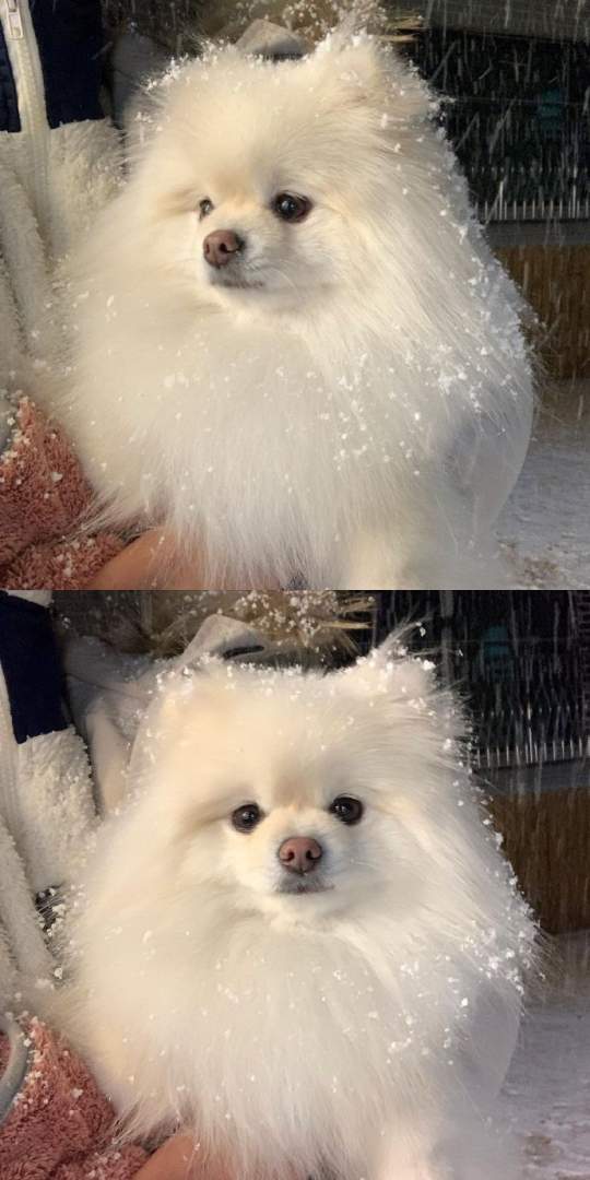 把雪花当做婚纱的小狗。