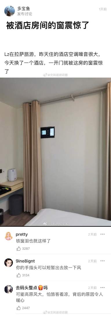 被酒店房间的窗震惊了,
