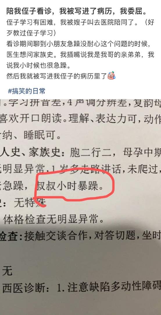 陪侄子看诊被写进了病历。