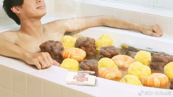 可以体会到泡面食材感受的泡澡玩具。