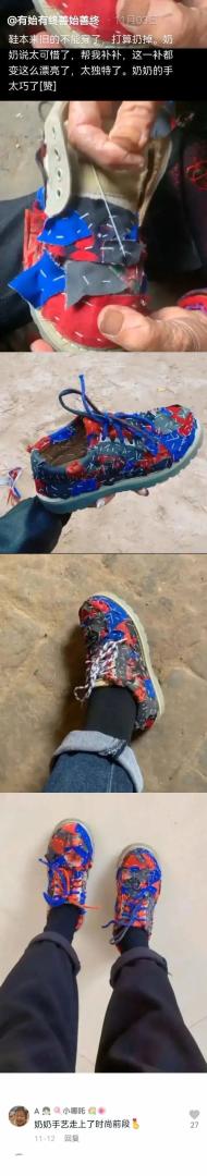 奶奶补的鞋子有多时尚。