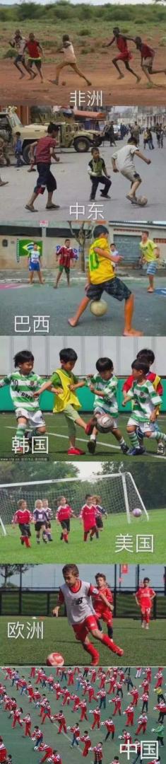 那些国家孩子真可怜,那么多人抢一个球,你看我们,每人一个球,多和谐。